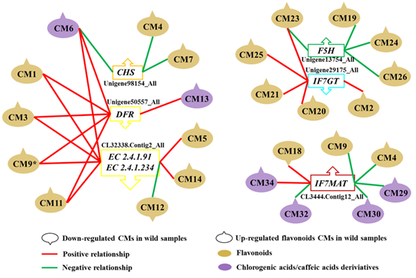 该研究获取了新疆一枝蒿不同品种的花、茎、枝叶部位的代谢组和转录组差异;筛选出34个品种相关化学标志物,包括黄酮类和苯丙素类化合物,其中19个为潜在新化合物;结合相关性分析和qPCR,验证了与24个化学标志物密切相关的6个差异表达基因。该研究结果为新疆一枝蒿质量控制提供了新的分子基础,也为其他药用植物学研究提供了方法学和研究思路的参考。