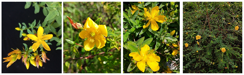 A.贯叶连翘,B.短柱金丝桃,C.美丽金丝桃,D.北栽秧花
