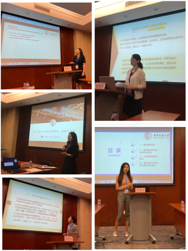 我校国际教育学院副教授田艳受邀主持了“孔院与文化传播”分论坛的报告,对本论坛专家学者的报告进行了点评,并组织本论坛专家学者进行了热烈的讨论和交流。在“国际中文教育研究”小组论坛中,我校国际教育学院博士研究生龚漫、高伟、雷歌、刘帅奇、张婧、王睿昕分别就意大利、保加利亚、塞尔维亚、印度尼西亚、泰国和马来西亚的中文教育及教学资源发展情况作了报告。在“学科建设与教学”小组报告中,我校国际教育学院博士研究生李晓露分析了北欧五国中文教育发展的动因和特征。在“孔院与文化传播”论坛报告中,博士生刘晶晶汇报了《世界主要语言机构教学资源本土化发展比较与思考》。我校国际教育学院博士生谷甲斌基于实证研究,分析了孔子学院文化活动的现状、问题与对策。我校国际教育学院硕士研究生张清以微课作品《我心中的英雄》为例,讨论了文化语境理论在汉语语法微课中的应用。我校国际教育学院硕博士研究生们有关国际中文教育国别化研究的报告获得了与会专家的高度关注与认可,获得了学者们的热烈讨论。