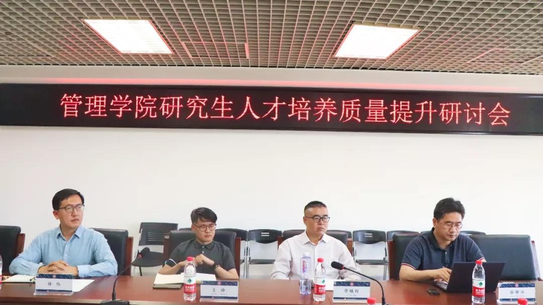 新闻网讯 5月28日,管理学院召开人才培养质量提升研讨会。学院院长李曦辉,校人才培养工作会议对接管理学院的联络员、研究生院副院长薛寒冰,教务处副处长王帅等相关与会人员出席此次会议,副院长徐伟主持会议。