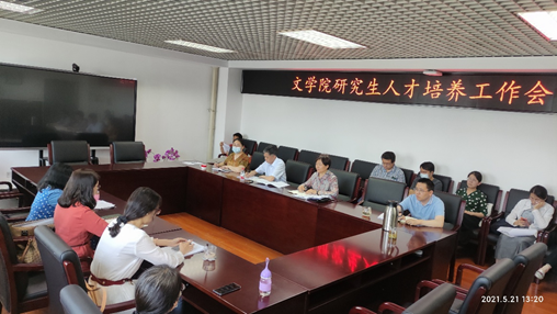 新闻网讯 5月21日,我校文学院在文华楼1301会议室召开研究生人才培养工作研讨会。学院全体教师和研究生院学位工作办公室史绪参加会议。会议由文学院副院长毕海主持。