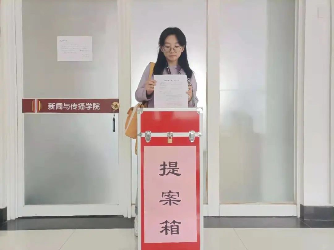 新传学子们积极报名、踊跃参加、广泛讨论、认真筹备提案,力争在提案中提出切实可行的想法及建议,并利用课余时间充分讨论选题及提案内容。参赛队采用发放调查问卷、访谈等方式,了解、调查同学们对于学院发展建设的想法及建议,进一步提升提案的质量。提案撰写完成后,同学们以现场投递的形式,将形成的提案投入提案箱内。