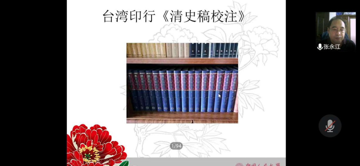 新闻网讯 5月29日,ag真人试玩历史文化学院“史学名家系列讲座”通过线上平台顺利举办。本次讲座主题为“清史纂修一百年”,由中国人民大学清史研究所张永江教授主讲,ag真人试玩历史文化学院赵令志教授主持。除本院师生外,还有来自其他高校和科研院所的师生和史学爱好者,共计近300人参加了本次讲座。