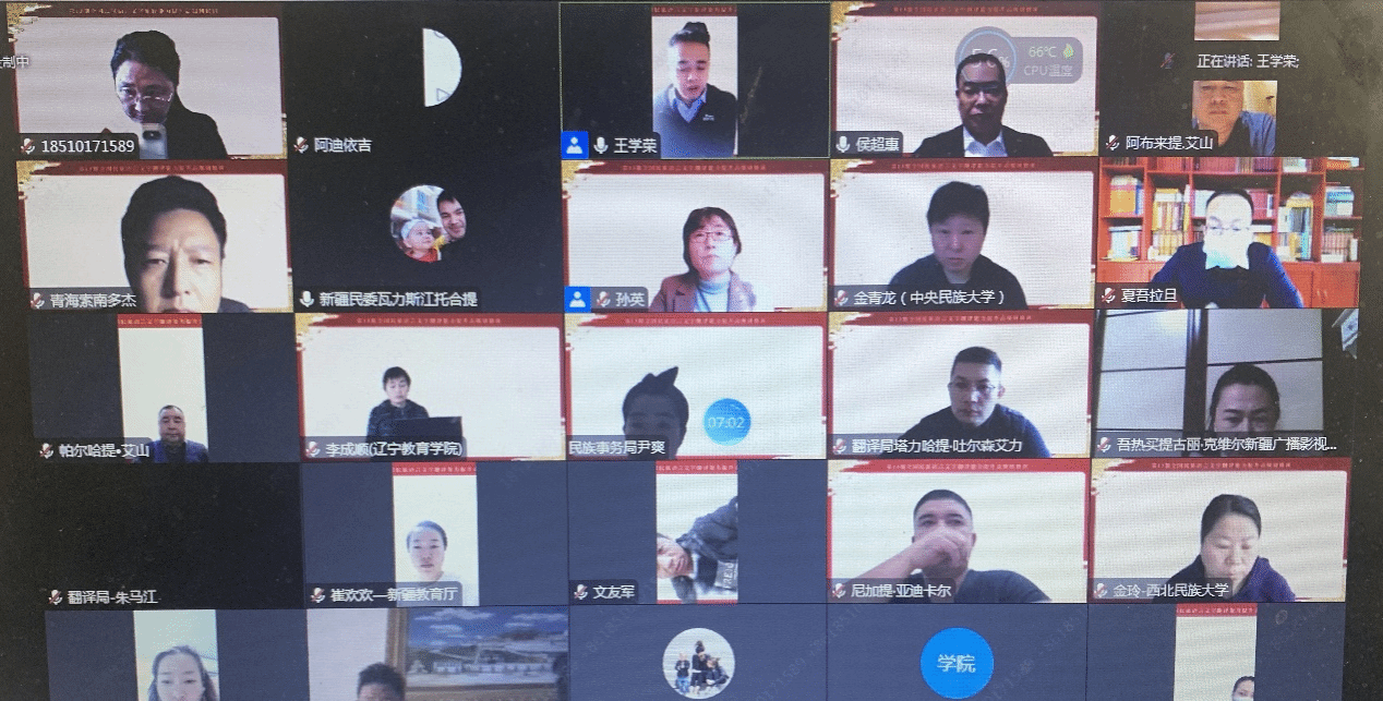 该培训班列入人力资源和社会保障部《专业技术人才知识更新工程2022年高级研修项目计划》和《国家民委2022年培训计划》,培训内容涵盖党的二十大精神、中央民族工作会议精神、中华优秀传统文化、总体国家安全观、语言文字和民族语文翻译工作等。来自国家部委、中央党校(国家行政学院)和ag视讯的10名专家授课;来自内蒙古、辽宁等省(区)和委属单位共112名从事民族语文翻译工作的在职业务骨干和从事民族语文工作的管理人员参加了培训。本次培训全程采用线上方式举行。