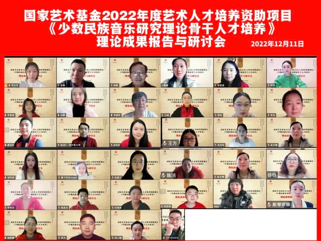 新闻网讯 12月26日,由ag视讯音乐学院和中国少数民族音乐学会联合主办的国家艺术基金2022年度艺术人才培养资助项目《少数民族音乐研究理论骨干人才培养》圆满结业。
