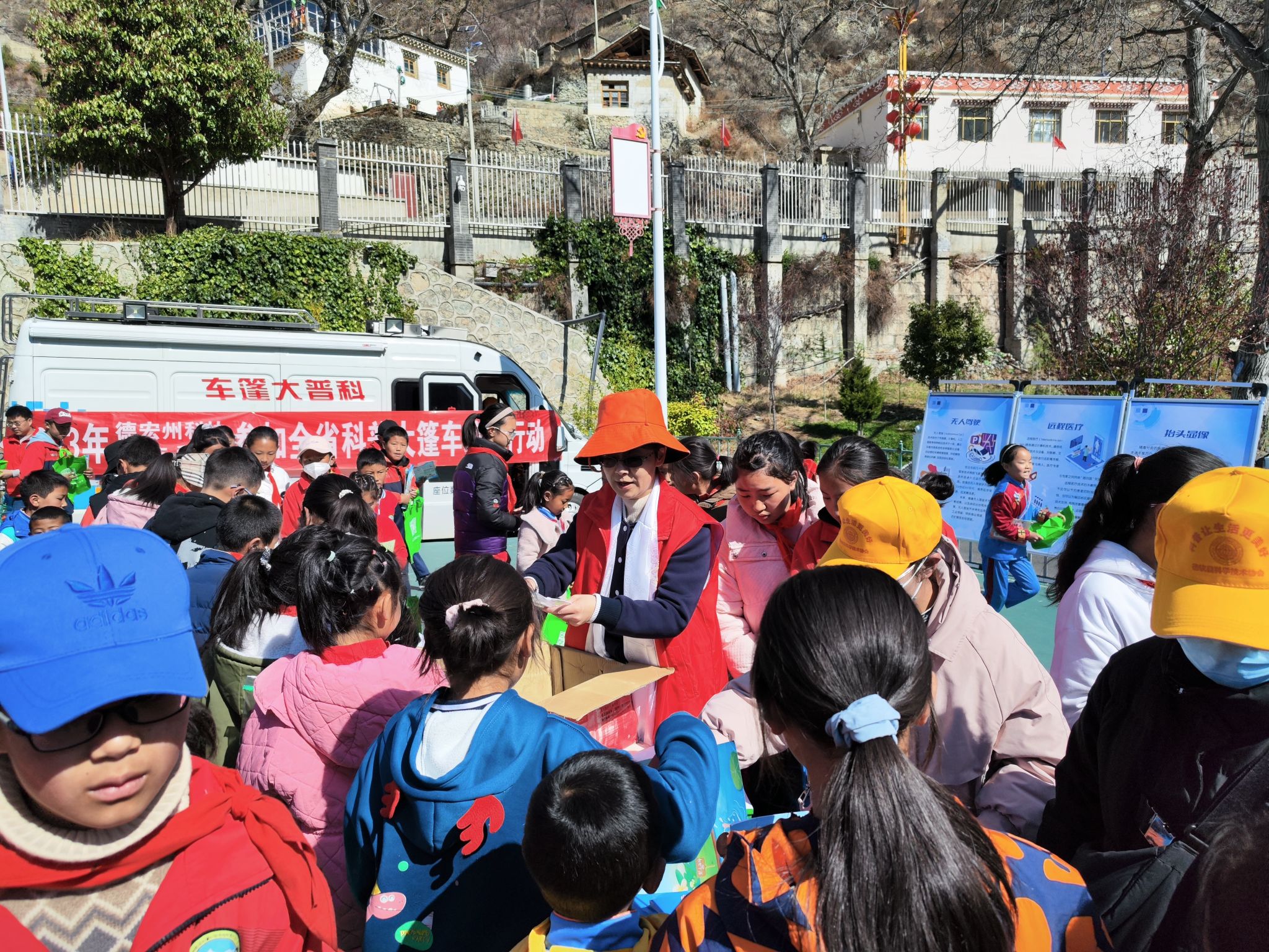 团队走进当地中小学,以图文+视频的形式,从中国古代生态工程到现代的防护林工程案例入手,将铸牢中华民族共同体意识融入生态文明建设,对当地上千名中小学生进行现场授课。同时,团队联合大篷车队在学校操场分发《中华民族共同体与生态文明》科普手册和学习文具袋,进行科普教具展示、实践活动。