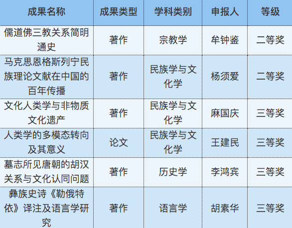 新闻网讯 日前,《教育部关于第九届高等学校科学研究优秀成果奖(人文社会科学)奖励的决定》正式公布,我校共有6项成果获奖,其中二等奖2项,三等奖4项。获奖成果主要集中在民族学与文化学、宗教学、历史学和语言学。