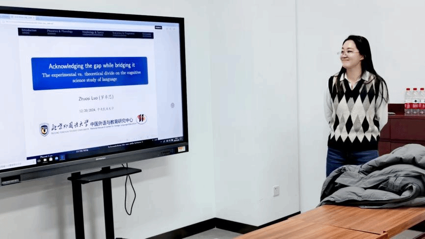 新闻网讯 为深化学生对语言处理神经机制的理解,介绍心理语言学与神经语言学前沿研究情况,外国语学院于12月20日下午在丰台校区明德楼532会议室举办学院学术活动月系列活动——“语义与神经科学”工作坊,本次工作坊同时为“文·语”学术讲堂的第15期活动。工作坊邀请北京外国语大学中国外语教育与研究中心专职研究员、助理教授,美国乔治城大学理论语言学及认知科学双专业博士罗卓思主讲,带领大家走进语言科学的世界。
