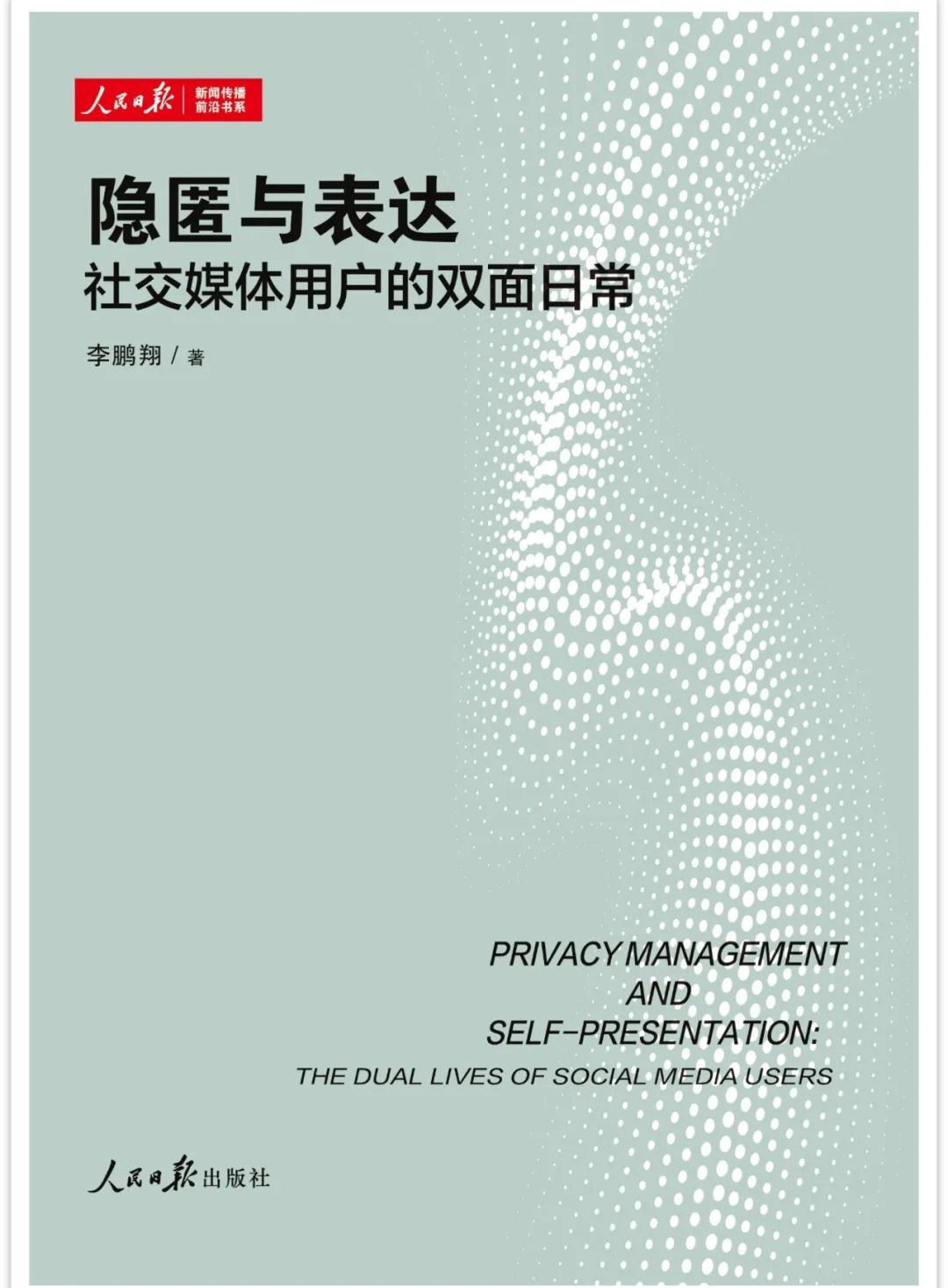 李鹏翔专著《隐匿与表达:社交媒体用户的双面日常》由人民日报出版社正式出版发行。全书16万字,为“ag真人试玩新闻与传播学院博闻书系”书目之一。该书立足于社交媒体深度融入日常生活的社会背景,从微观层面分析用户的媒介使用行为,深入揭示“隐匿”与“表达”这两种行为的心理机制与动因。书中内容为理解媒介技术变迁与人类社会生活的关系提供了新的视角和重要启示。
