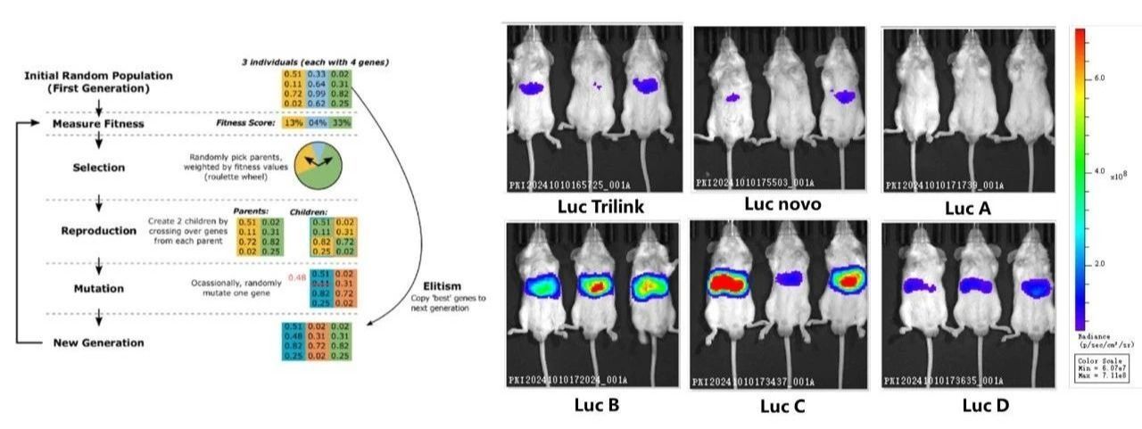 mRNA药物正从技术验证迈向多适应症拓展的关键阶段,其快速响应与生产灵活性为疾病治疗带来新契机。mRNA的序列设计对其稳定性和表达效率至关重要,可靠性和准确性有待提升。codonOPT基于遗传进化算法构建,针对稳定性与表达效率两个目标求解帕累托前沿。实施过程中,通过有效控制种群多样性,利用拥挤度函数与对CAI值的拟合,克服了种群快速坍塌的缺陷,能有效求解mRNA 合理范围的帕累托前沿。经湿实验验证,codonOPT优化的mRNA 序列相较于现有市售产品优势显著,且优于对照算法。