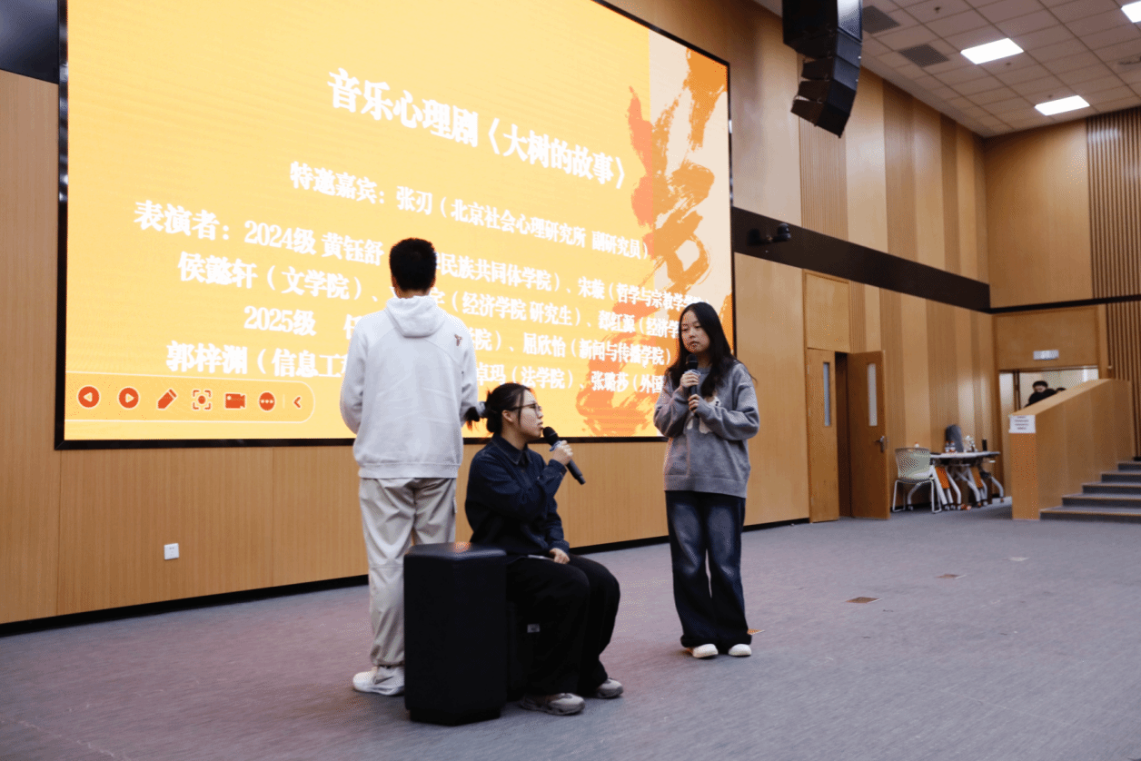 亓雯汇报的《音乐疗愈》课程,融合艺术与科学,通过音乐冥想、器乐即兴、音乐心理剧等形式,借助脑电、眼动等科学技术,实证化探索音乐对情绪调节与认知功能的积极影响。课程现场演绎音乐心理剧《大树的故事》,情感真挚,引人共鸣。