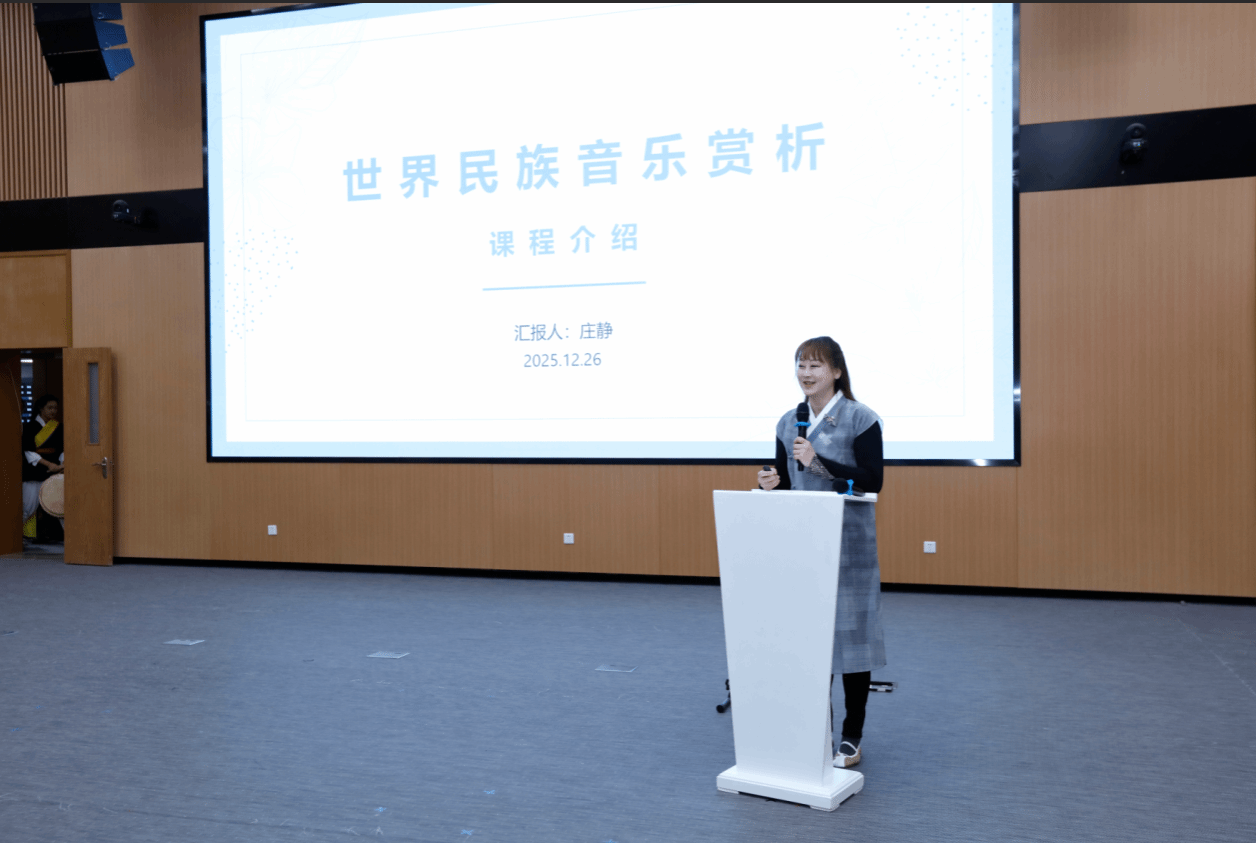 音乐学院庄静老师《世界民族音乐赏析》课程,以音乐为窗口,引导学生树立全球视野与跨文化理解力。课程采用“沉浸式+参与式”教学模式,现场呈现的朝鲜半岛打击乐《四物游戏》,节奏鲜明、感染力强,体现了世界音乐文化的多样魅力。