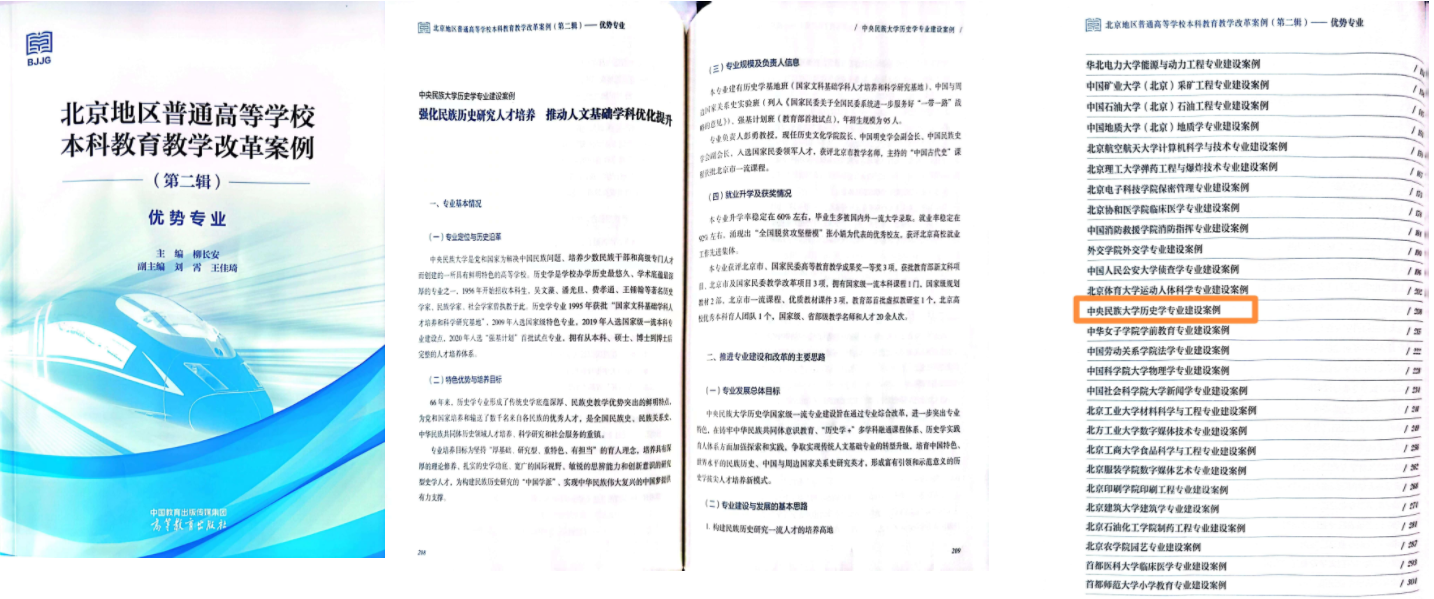 新闻网讯 近日,北京市教委主编的《北京地区普通高等学校本科教育教学改革案例》发布,ag真人试玩历史学专业“强化民族历史研究人才培养,推动人文基础学科优化提升”建设案例入选。