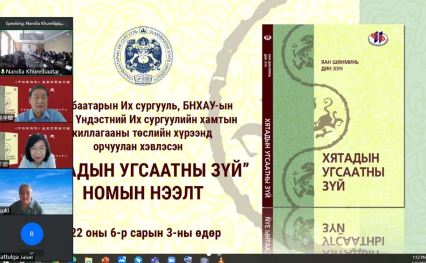 新闻网讯 6月4日,《中国民族志》在蒙古国正式出版发行,发行仪式在蒙古国乌兰巴托大学举行。本书中文主编杨圣敏教授,副主编、教育部人文社会科学重点研究基地ag真人试玩中国少数民族研究中心主任丁宏教授在线上出席发行仪式。蒙古国乌兰巴托大学校长白嘎力赛罕,本书基里尔蒙古文译文版翻译团队在现场出席仪式。