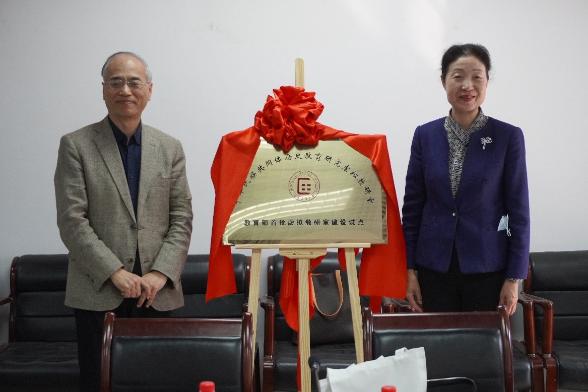 启动会上,宋敏与虚拟教研室主任李鸿宾为虚拟教研室揭牌。