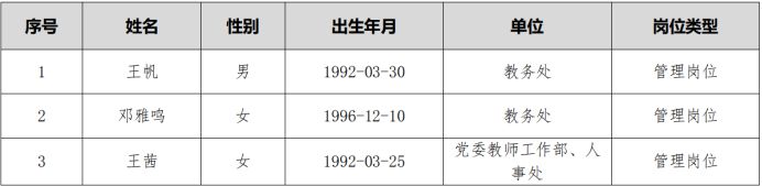 公示期间如有问题,请以电话或书面形式向学校人事处反映。