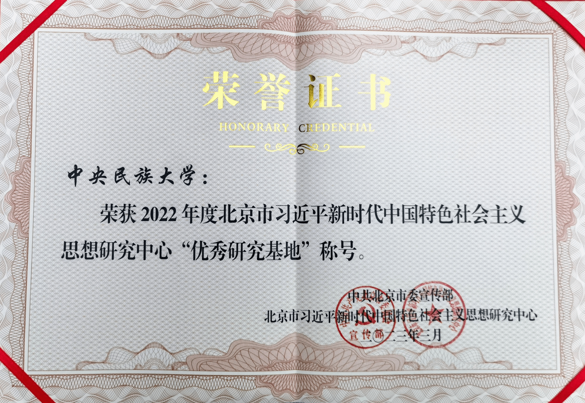 新闻网讯 近日,北京市习近平新时代中国特色社会主义思想研究中心召开2023年度工作会。会议对北京市习近平新时代中国特色社会主义思想研究中心“优秀研究基地”等进行表彰。ag视讯研究基地荣获2022年度北京市习近平新时代中国特色社会主义思想研究中心“优秀研究基地”“优秀工作者”两个奖项。此次获奖,是该基地继2021年获奖后,再次获奖。学校党委副书记、北京市习近平新时代中国特色社会主义思想研究中心ag视讯研究基地主任邹吉忠作为优秀研究基地代表出席会议。