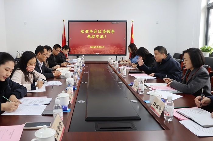 新闻网讯 3月23日上午,丰台区委常委、组织部部长田涛一行来我校丰台校区调研座谈,对接干部人才领域深化合作事项。校党委副书记邹吉忠接待田涛一行并参观学校“牢记嘱托,砥砺奋进”成就展,介绍学校的基本概况、办学历程、办学成就、办学特色和“双一流”建设情况。