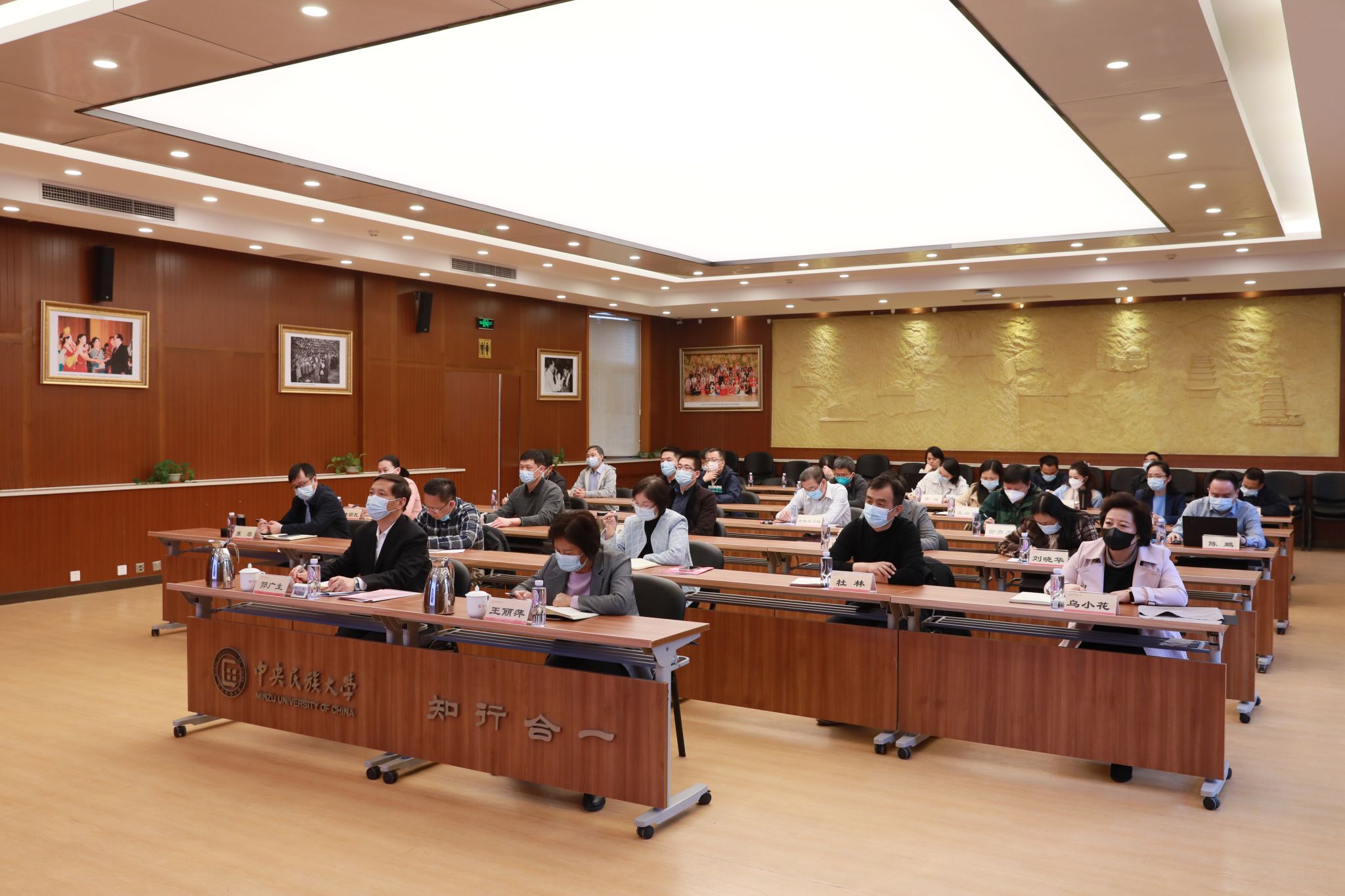 我校在校校领导,相关职能部门和二级单位负责人员在海淀校区知行堂参加会议。