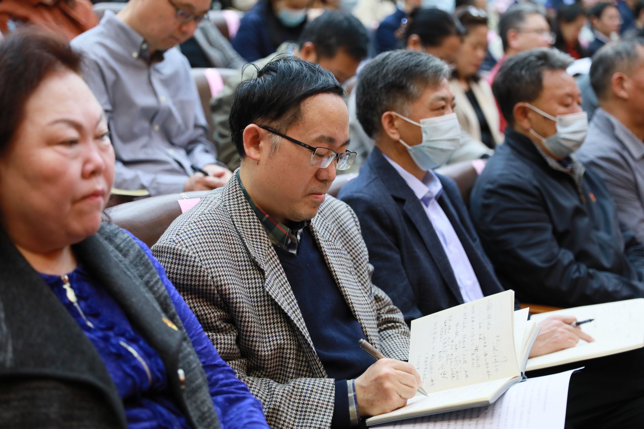 国家民委第二指导组成员,学校在校校领导及近期退出领导班子的老同志,党委委员、纪委委员,处级领导干部、组织员,各民主党派主要负责人,无党派人士代表,各级人大代表和政协委员,全体教工党支部书记,教师、学生代表参加会议。