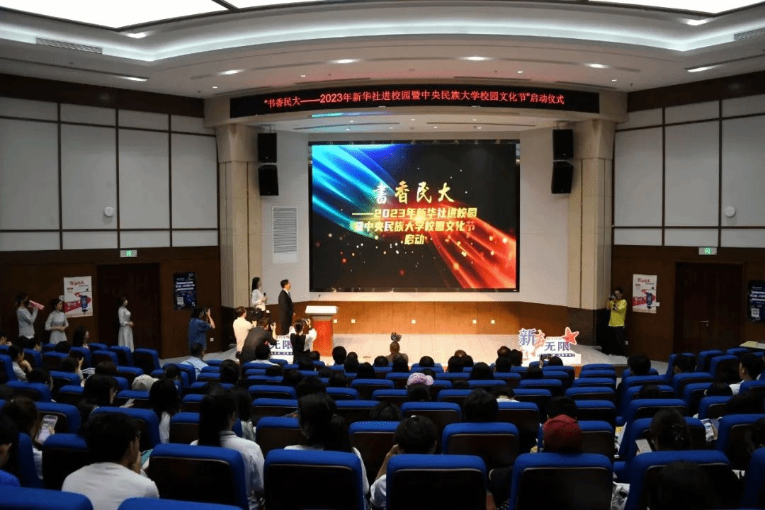 ▲“书香民大——2023年新华社进校园暨ag视讯ag真人试玩节”正式启动