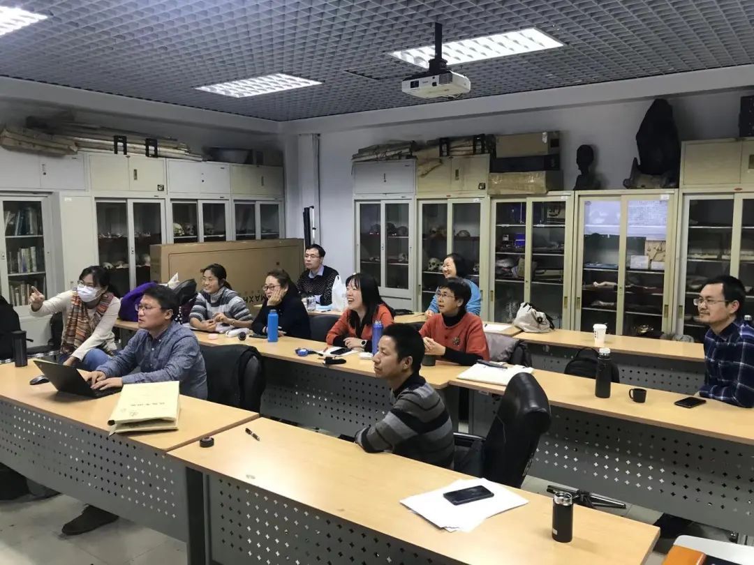 考古文博系老师在教研室进行学术讨论