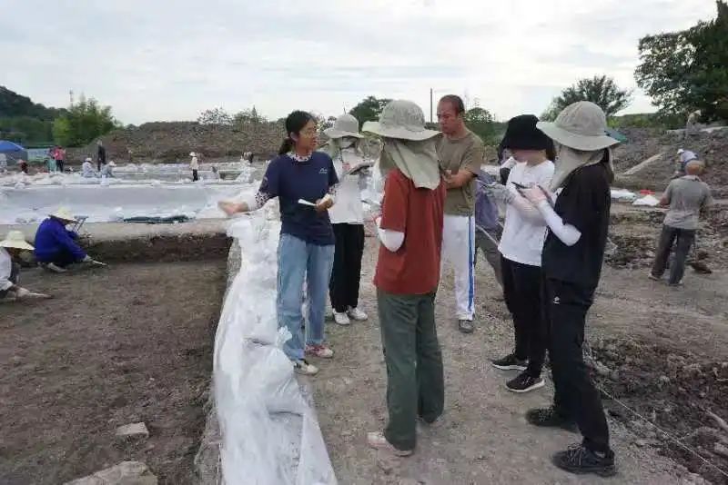 佟珊老师带领学生团队在宁波考古遗址发掘现场