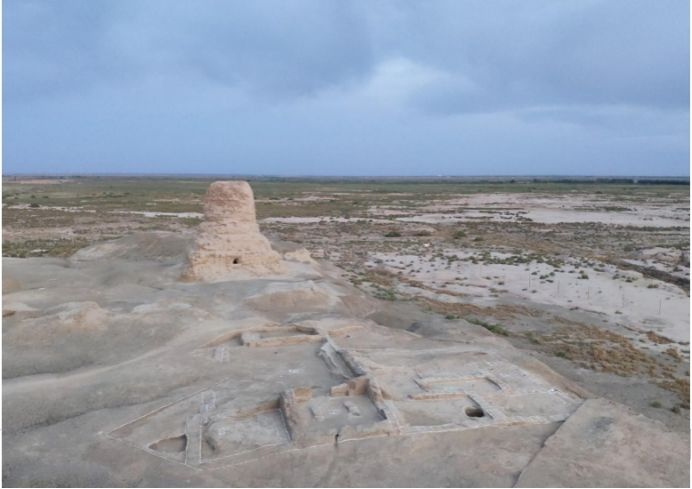 莫尔寺遗址发掘现场:远处为圆形塔,近处为大佛殿和僧舍建筑基遗址