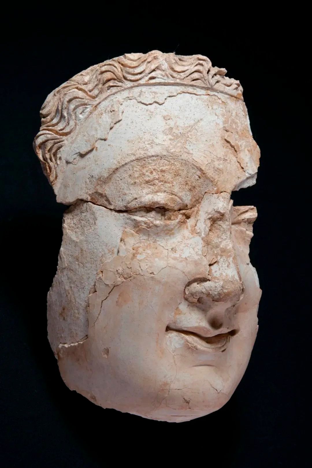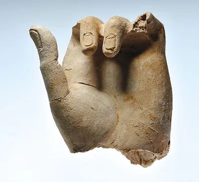 2019年大佛殿遗址中心大殿出土的石膏佛像的局部