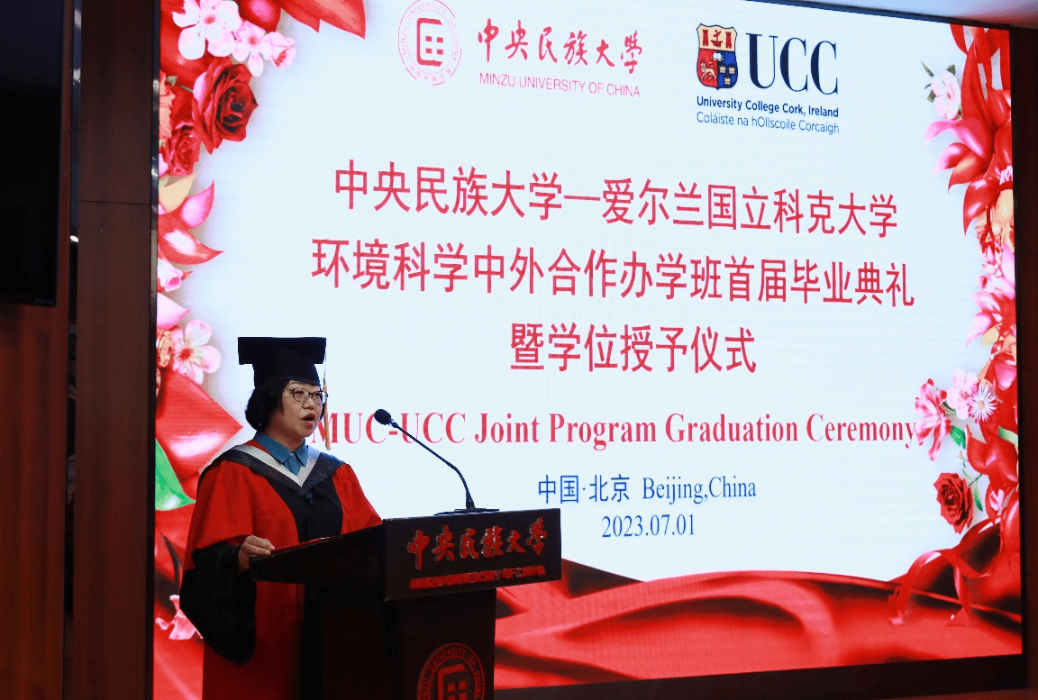 新闻网讯 2023年7月1日,ag真人试玩首届中外合作办学项目环境科学本科专业的毕业典礼暨学位授予仪式在知行堂隆重举行,党委副书记、校长郭广生,党委副书记、副校长李计勇,爱尔兰驻华大使馆商贸、科技及创新参赞乔柯汀,爱尔兰国立科克大学马库斯·艾奇霍恩博士、教务处处长冯金朝、国际处副处长臧宁,生命与环境科学学院领导和老师、科克大学北京代表处工作人员及部分学生家长出席了毕业典礼。典礼由学院党委书记张严主持。