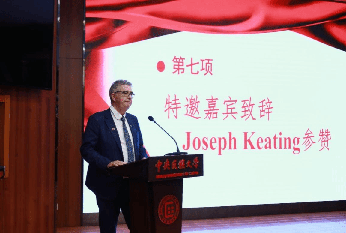 爱尔兰驻华大使馆商贸、科技及创新参赞乔柯汀为毕业生们送上了祝福,并希望同学们可以重返爱尔兰。
