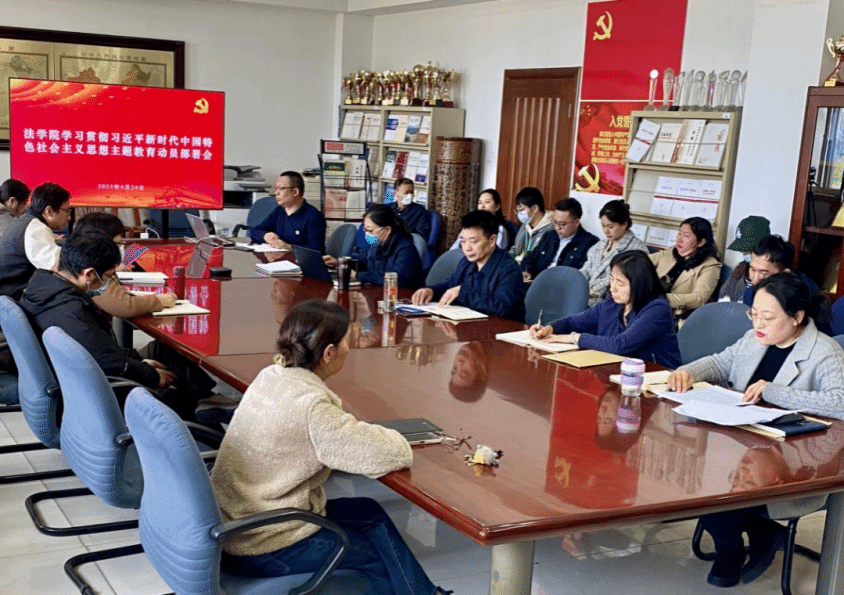自主题教育开展以来,法学院第一时间召开学习贯彻习近平新时代中国特色社会主义思想主题教育动员部署会,细致部署了学院在理论学习、调查研究、推动发展、检视整改、建章立制等方面的具体任务,坚持求真务实、真抓实干,努力在以学铸魂、以学增智、以学促干等方面下功夫、见实效。