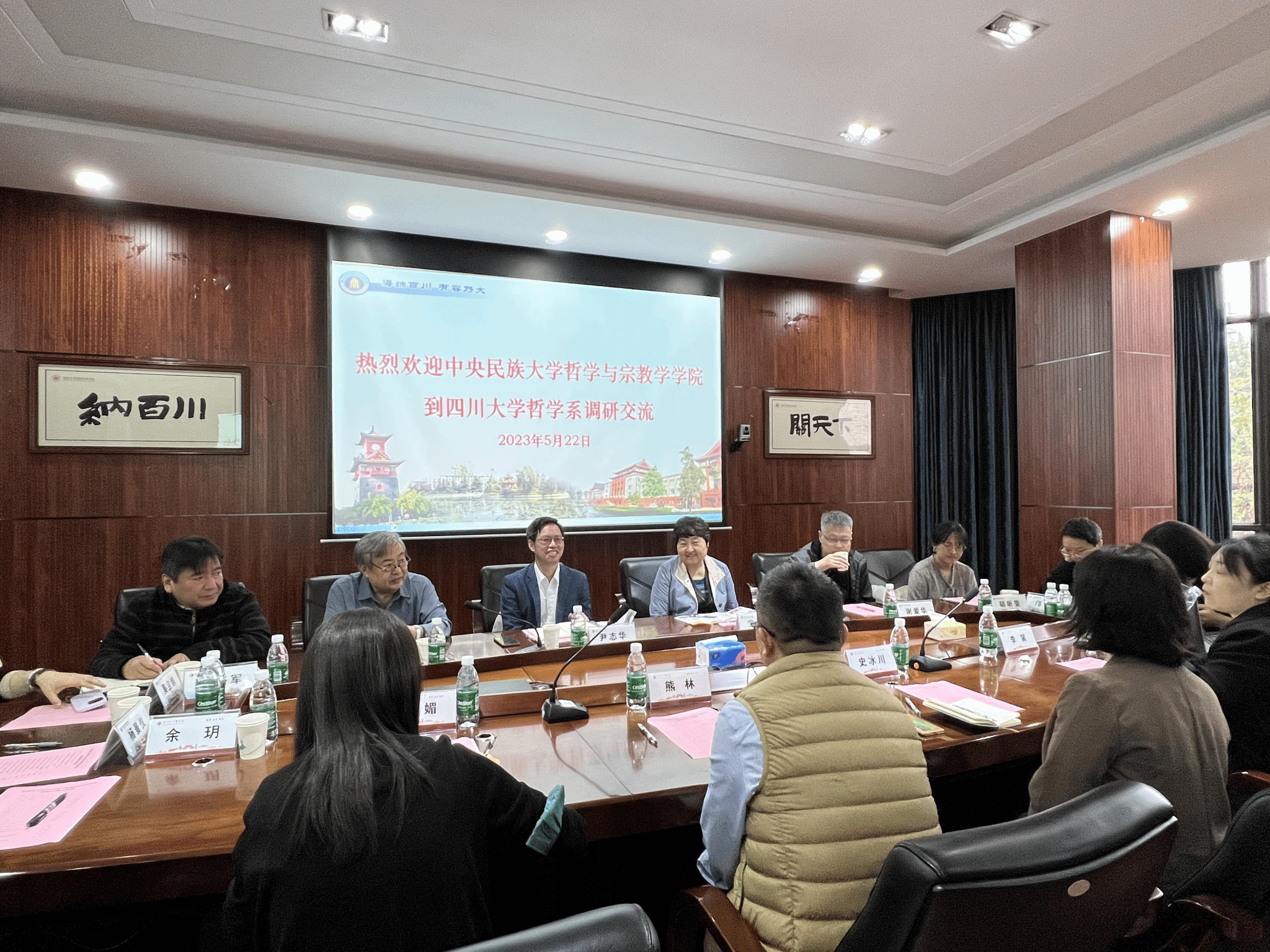 学院以铸牢中华民族共同体意识为主线,扎实推进学科转型升级,组成调研队前往西南民族大学哲学院,四川大学哲学系、道教与宗教文化研究所,围绕“民族类院校哲学专业人才培养特色实践教育体系”“中国少数民族哲学与铸牢中华民族共同体意识的关系”进行了专题研讨。