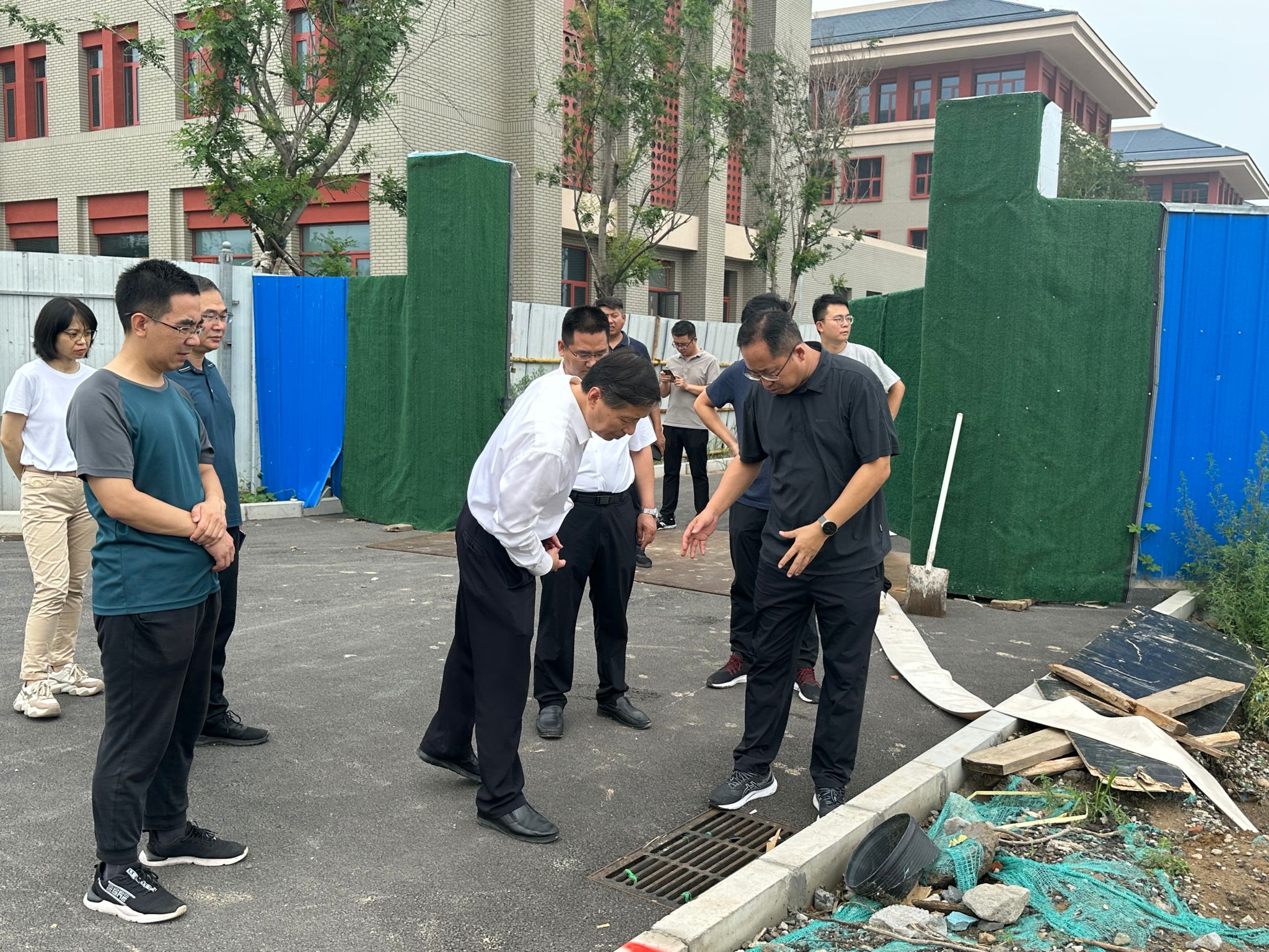 郭广生一行先后查看了校园防汛、安保以及校园楼宇漏水、过水等情况,详细了解校区风险隐患排查整治、防汛措施落实、应急物资储备等情况。来到图书馆,郭广生了解暑期师生图书馆使用情况,并与相关部门负责人进行座谈,了解施工安全、在校学生服务保障、秋季学期准备等情况。认真听取汇报后,郭广生指出,面对这次突如其来的暴雨,学校第一时间启动工作预案,迅速成立防汛抢险小组,相关部门闻汛而动、不畏风险,全力维护校园和在校学生安全。特别是丰台校区所在的千灵山地区是全市最大小时雨强地区之一,所有防汛抢险人员连续奋战,在属地政府的大力支持下,紧急抽排校内积水,妥善应对强降雨导致的停水等问题,确保了在校学生的正常学习生活和校园的安全稳定。郭广生强调,要认真总结此次防汛抢险工作经验,全面开展因汛受损情况和汛后安全隐患大排查和修缮工作,以高度的政治责任感和使命感做细做实各项汛情后续工作。各单位、各部门要提高政治站位,加强协调配合,增强工作合力,进一步加强应急处置能力建设,为师生打造安全舒适的学习工作生活环境。