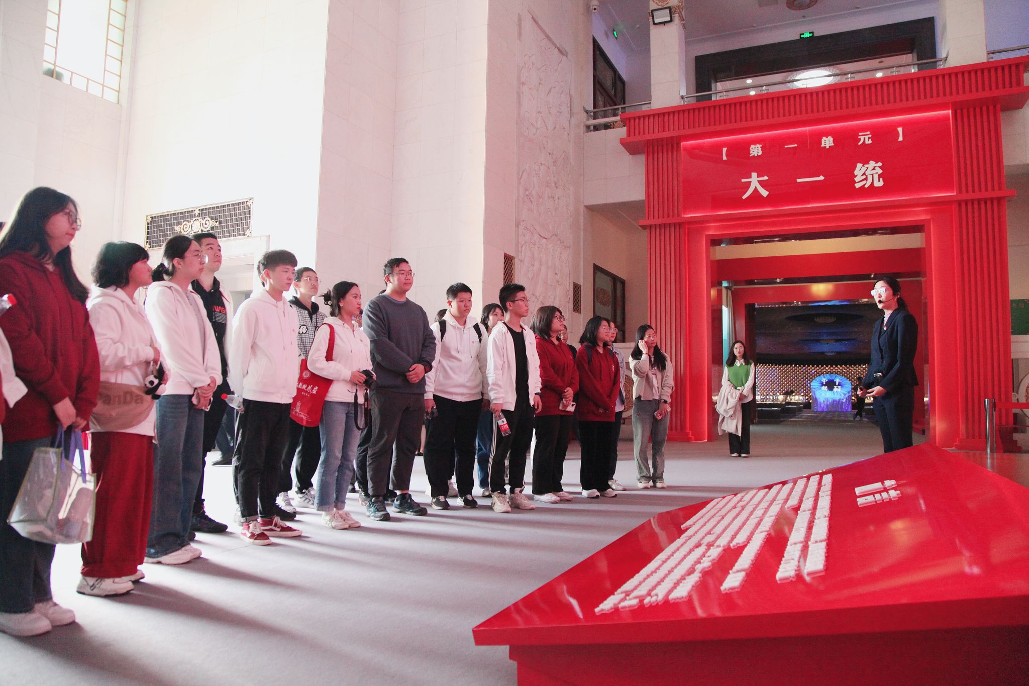 参观中,一件件承载历史的文物珍宝生动展示了中华文明连续性、创新性、统一性、包容性、和平性的突出特性,生动呈现了中华民族生生不息的历史发展,革故鼎新的创造精神,始终坚持“大一统”的底线共识,海纳百川的开放格局和协和万邦的天下情怀,让青年学生们不仅沉浸式了解了各民族交往交流交融的生动故事,更是通过史实例证明晰了中华民族共同体的发展脉络,深刻体悟中华民族永续发展背后的精神命脉。师生们纷纷表示,通过参观展览,受到了一次关于铸牢中华民族共同体意识深刻的精神洗礼和思想教育。
