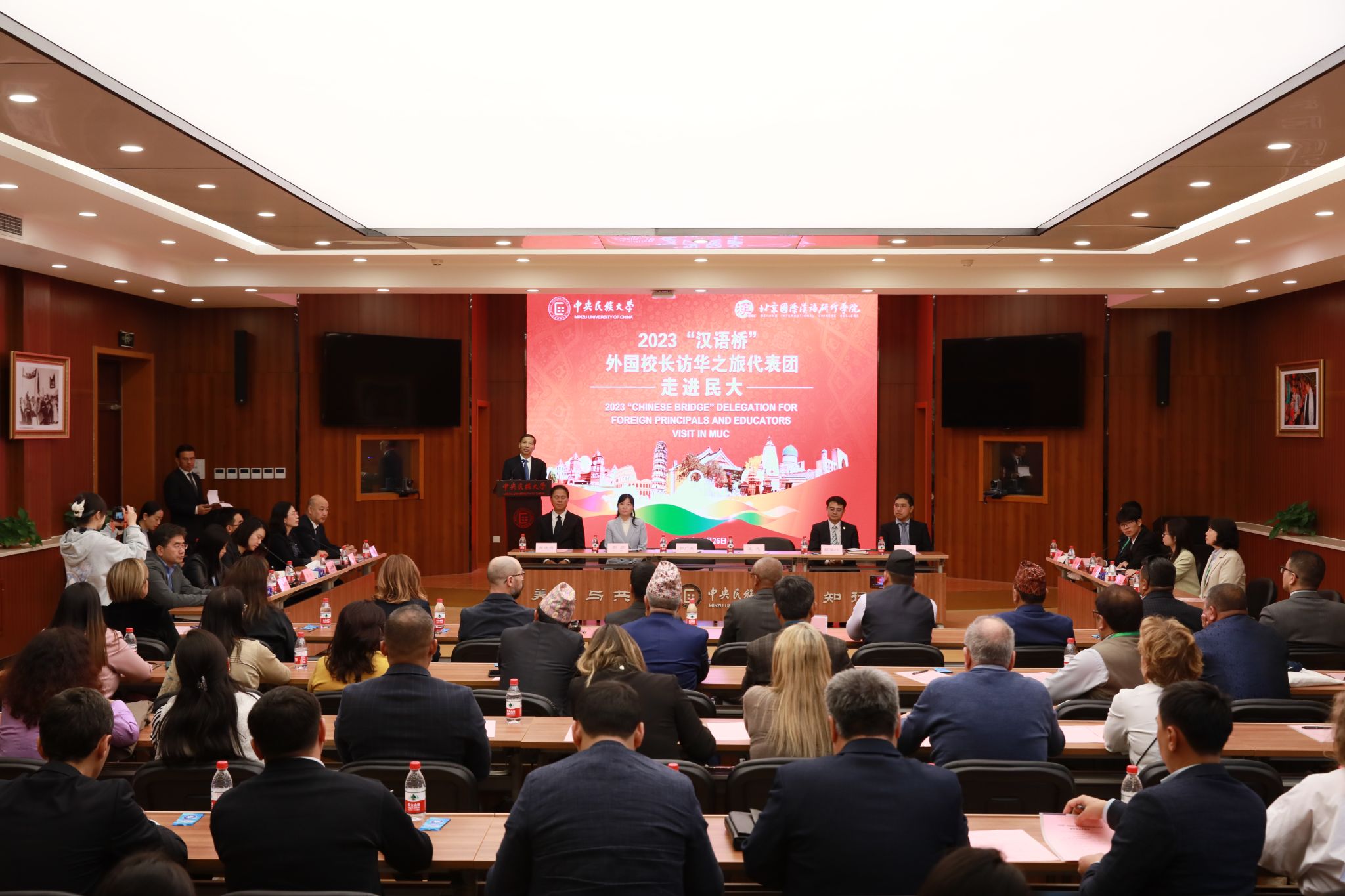新闻网讯 近日,北京国际汉语研修学院2023“汉语桥”外国校长访华之旅代表团一行来校访问。代表团由来自尼泊尔、意大利、白俄罗斯和乌兹别克斯坦4个国家的40名大中小学校长及教育官员组成。校党委副书记、校长郭广生出席在知行堂举行的欢迎仪式并致辞,党委常委、副校长王志主持欢迎仪式。