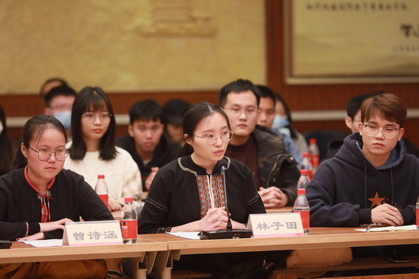 座谈会上,海南省民族宗教事务委员会副主任符秀容向现场大学生代表们介绍了海南自由贸易港建设及民族地区发展情况。海南省委人才发展局副局长文振忠介绍了海南省人才引进相关政策。宋敏向大家介绍了ag真人试玩特色思政教育、招生就业、人才培养等方面情况。清华大学2019级新闻专业本科生林子田、北京大学2020级人文科学实验班本科生曾诗涵、ag真人试玩2020级人类学专业研究生陈乙玲分别发言。与会学生代表与海南省委、省政府领导就法律、教育、人才、民族文化传承等方面问题进行了互动交流。学校相关职能部门负责人参加座谈。(摄影:马丹妮)