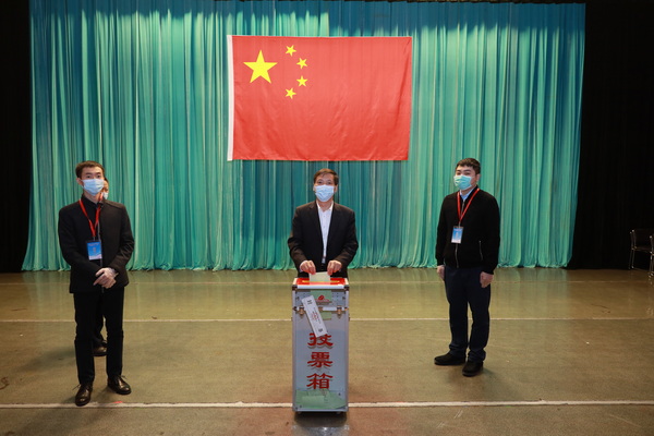 当天早上8时55分,海淀校区总监票人校党委副书记邹吉忠、副总监票人校党委组织部常务副部长张文香在学校大礼堂中心投票站检查票箱、封箱。丰台校区总监票人丰台区王佐镇魏各庄村总支副书记陈东海、副总监票人丰台校区管理委员会综合与后勤服务工作办公室副主任徐晓鹃在丰台校区综合楼东区报告厅检查票箱、封箱。各投票点检查票箱和封箱工作同步进行。