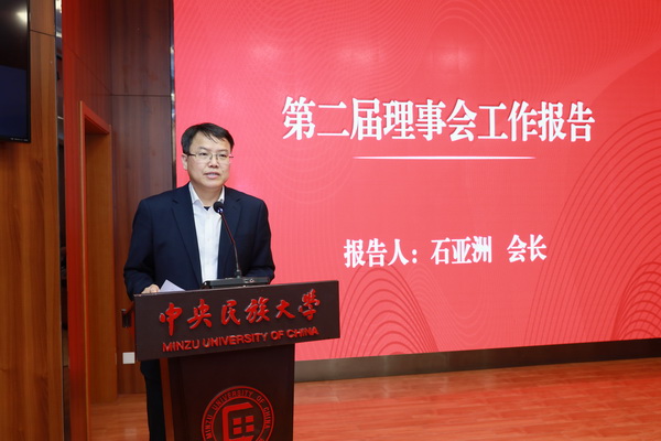 校友会会长石亚洲向长期以来为校友工作做出杰出贡献的荣休理事及校友们致以崇高的敬意。他希望新一届理事会充分借鉴上一届理事会及地方校友组织的宝贵经验,发挥校友会交流合作平台作用以及与母校各地分会的联系纽带作用,高举习近平新时代中国特色社会主义思想的伟大旗帜,以铸牢中华民族共同体意识为主线,为开展好与世界一流大学建设相匹配的校友工作而矢志努力。