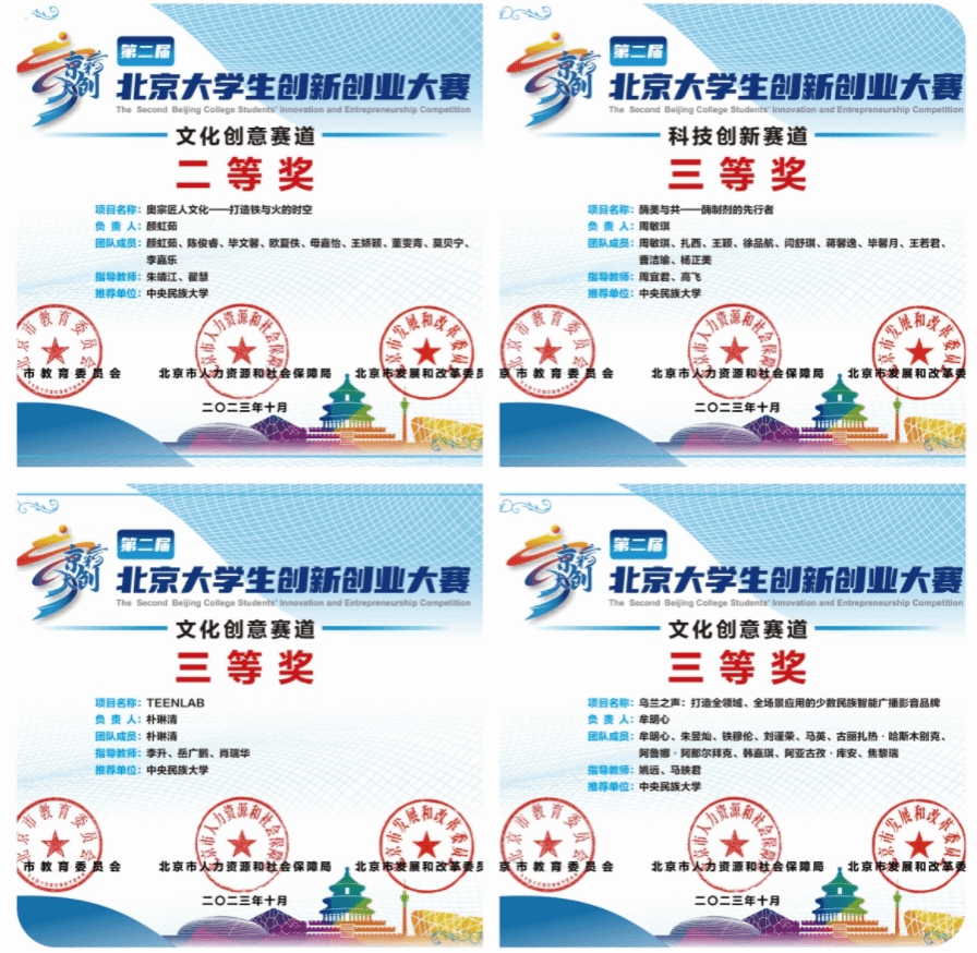 新闻网讯 近期,第二届“京彩大创”北京大学生创新创业大赛获奖名单公布,ag视讯获评“最佳组织奖”,另外4个创业项目获奖,其中文化创意赛道二等奖1项、三等奖2项,科技创新赛道三等奖1项。