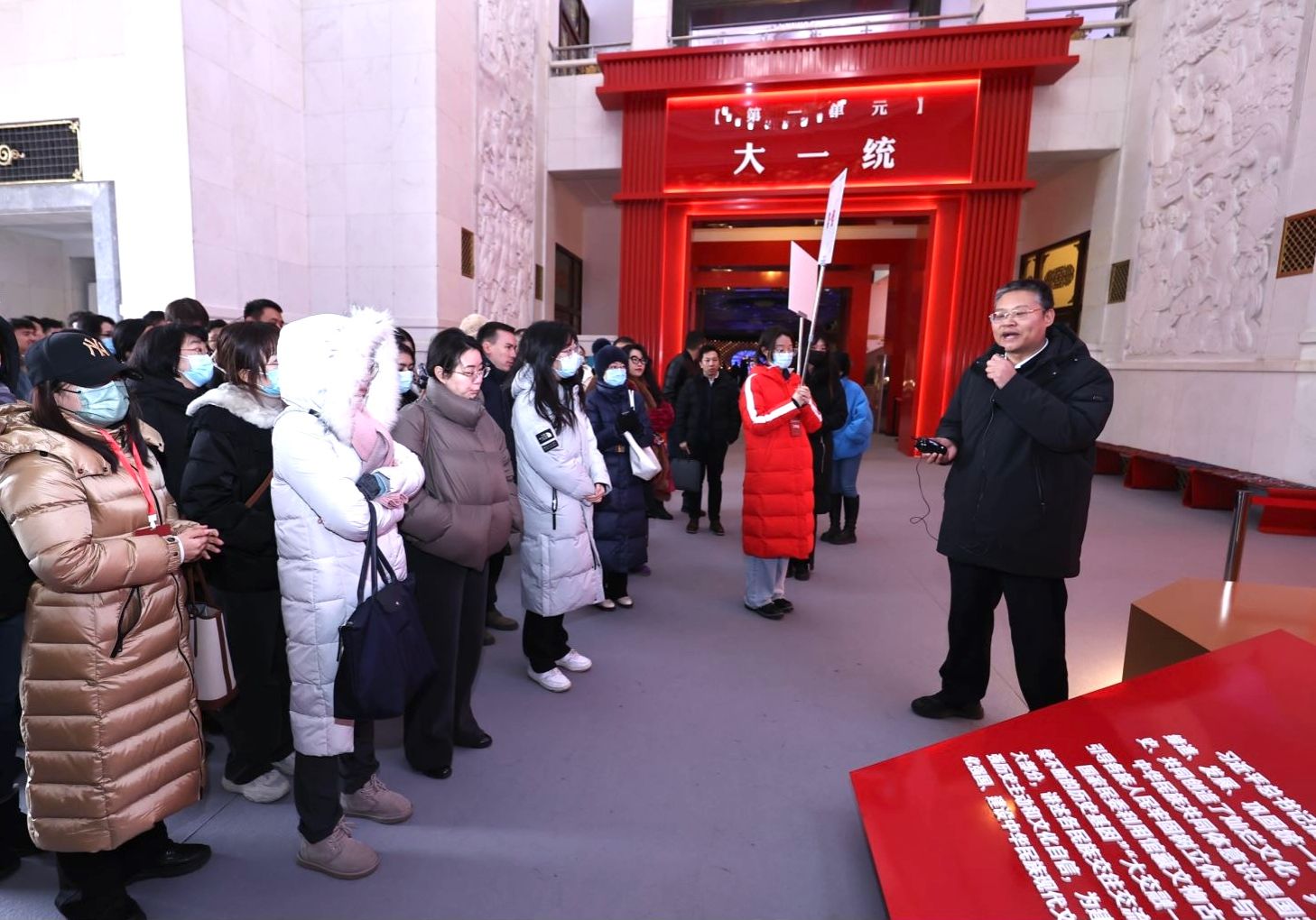 开班式结束后,全体学员赴铸牢中华民族共同体意识文物古籍展开展参观学习,民族文化宫党委书记、主任任毅和文化宫讲解团队在展览现场进行现场教学辅导,让学员们从“大一统”“大交融”“大团结”三个展览板块,更加直观、生动地体悟中华文明根脉,深入了解中华民族交往交流交融的历史,深刻感受新时代党的民族工作取得的历史性成就。