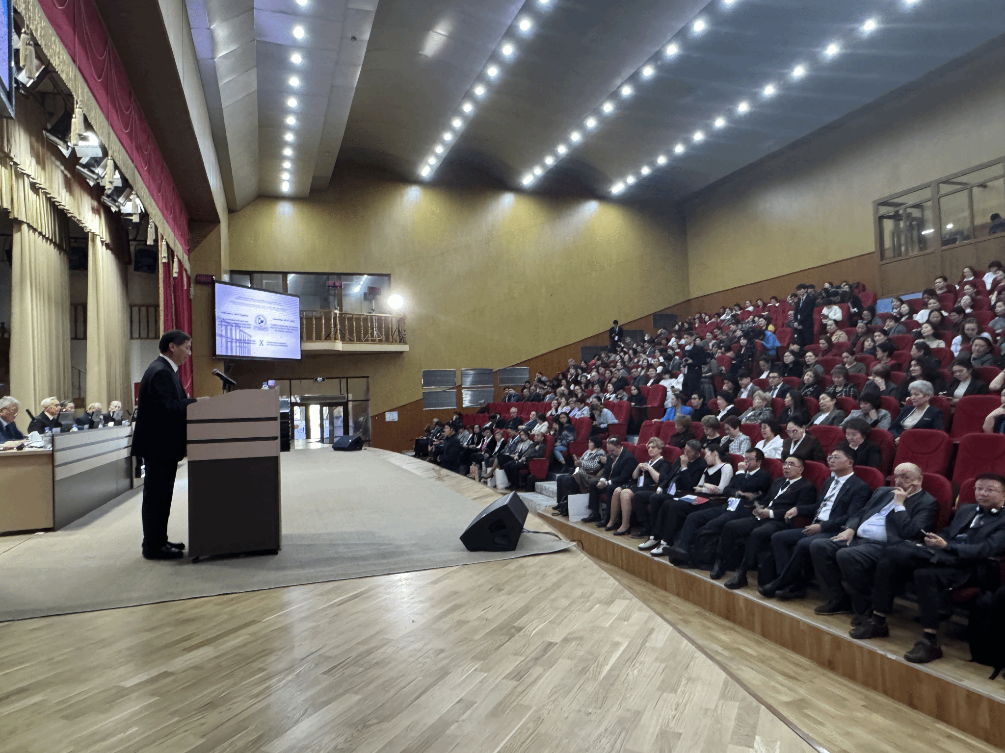 访问期间,郭广生出席第十届“全球变化背景下科学与教育的现实问题”国际会议,作为重要嘉宾致辞并作题为“深化文明交流互鉴 谱写‘一带一路’高校交流合作新篇章”的主旨发言。在发言中,郭广生介绍了学校的发展历程以及学校在走中国特色解决民族问题的正确道路中发挥的独特作用,重点回顾了习近平主席今年5月在中国—中亚峰会上提出的“携手建设守望相助、共同发展、普遍安全、世代友好的中国—中亚命运共同体”重要主张,呼吁与会各高校为推动构建人类命运共同体贡献更多力量、展现更大作为。代表团还访问了哈萨克斯坦阿布莱汗国际关系与世界语言大学,该校校长库南巴耶娃教授会见代表团一行。双方同意在现有两校合作的基础上加强应用学科专业学生人才培养,特别是在两校的中文教育、哈萨克语言教育领域扩大交换生名额,依托孔子学院推进两校间人文交流。代表团还考察了该校孔子学院。