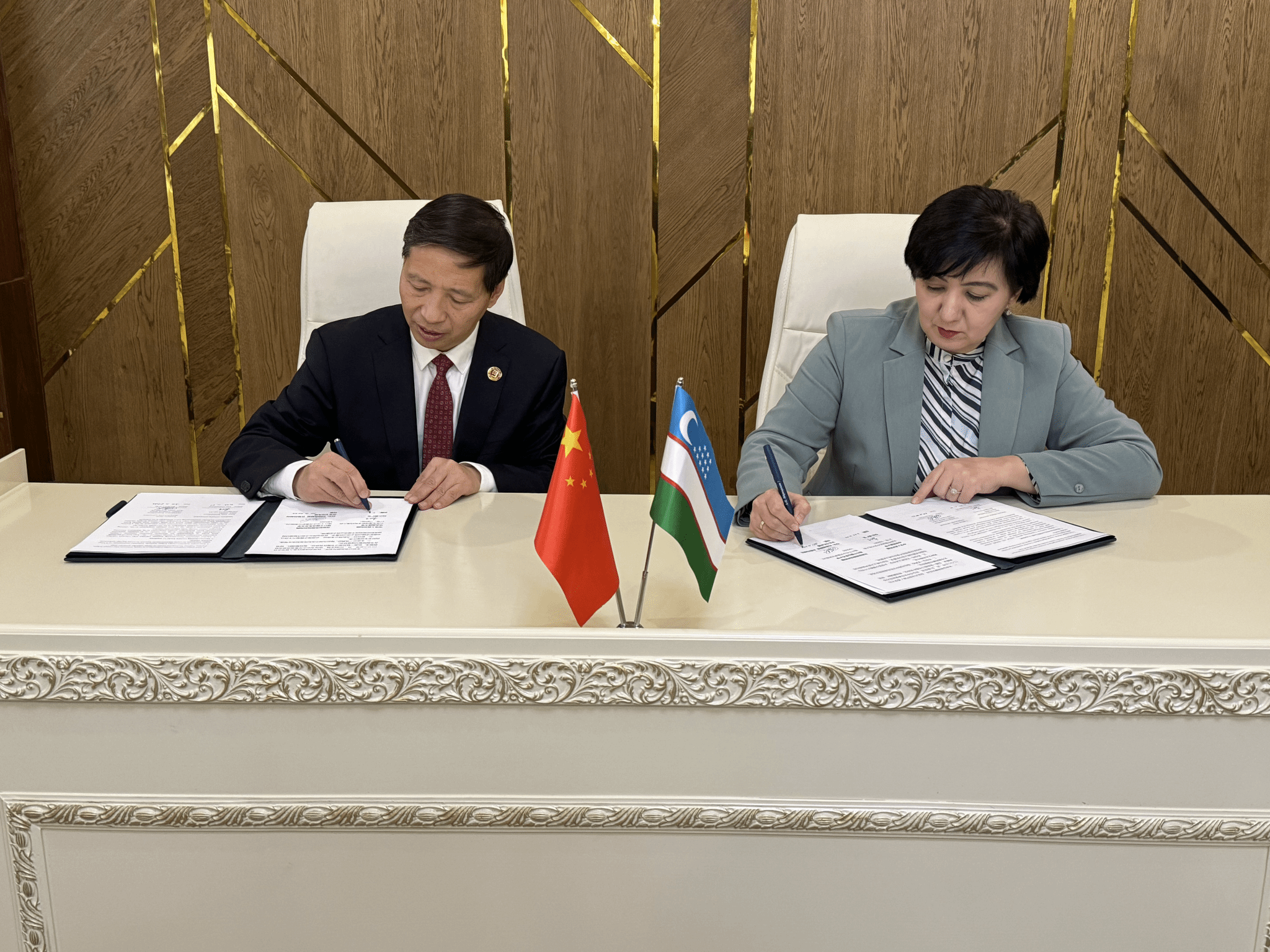 在乌兹别克斯坦,代表团访问了塔什干国立东方大学,与该校校长利赫西耶娃·古勒切赫拉教授、校长顾问、科研与创新副校长、国际合作副校长、东方学学院院长等,就加深科研合作、共同发表学术论文、扩大学生交流范围并提供奖学金和实习机会等议题进行了探讨交流。双方同意依托两校已成立的“中国—乌兹别克斯坦人文交流中心”共同承办国际学术会议。双方校长签署了两校学生交换项目协议,并在塔什干国立东方大学设立的“中国—乌兹别克斯坦人文交流中心”举行了挂牌仪式。代表团还考察了塔什干国立东方大学孔子学院。
