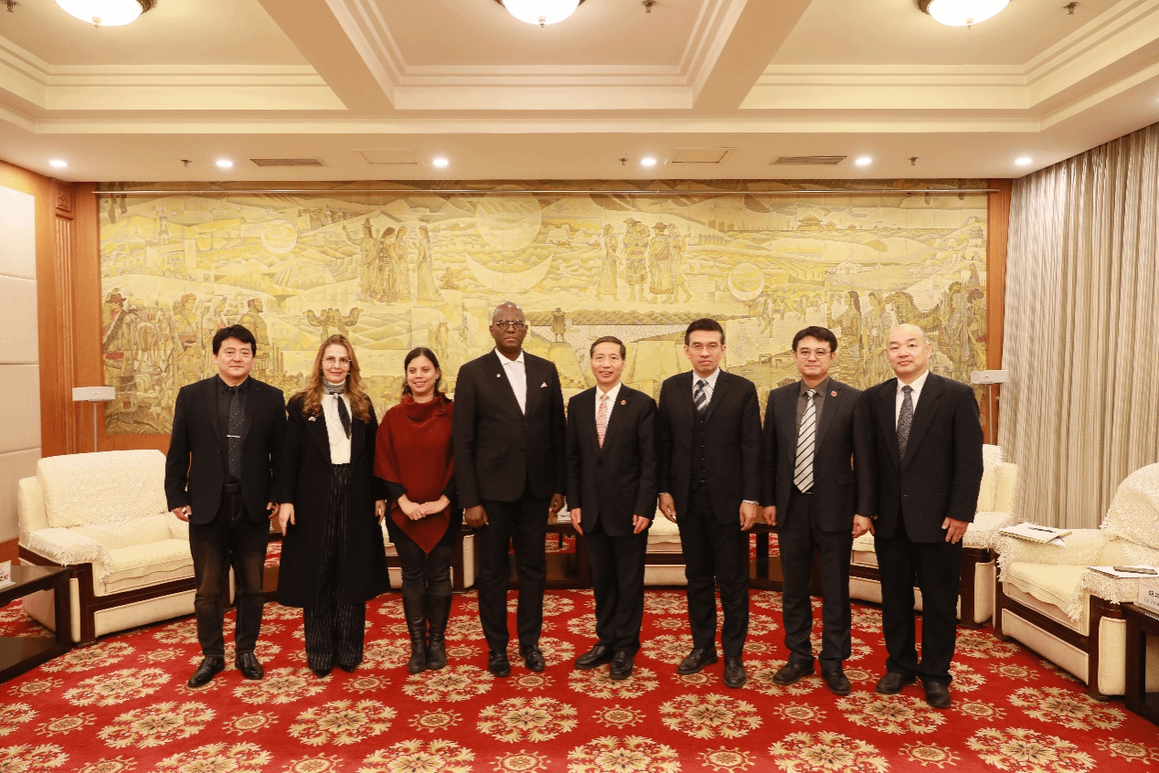 哈瓦那大学孔子学院院长、古巴驻中国大使馆教育与文化交流外交秘书随行访问。学校国际合作处、国际教育学院相关负责人参加会见。(摄影:马丹妮)