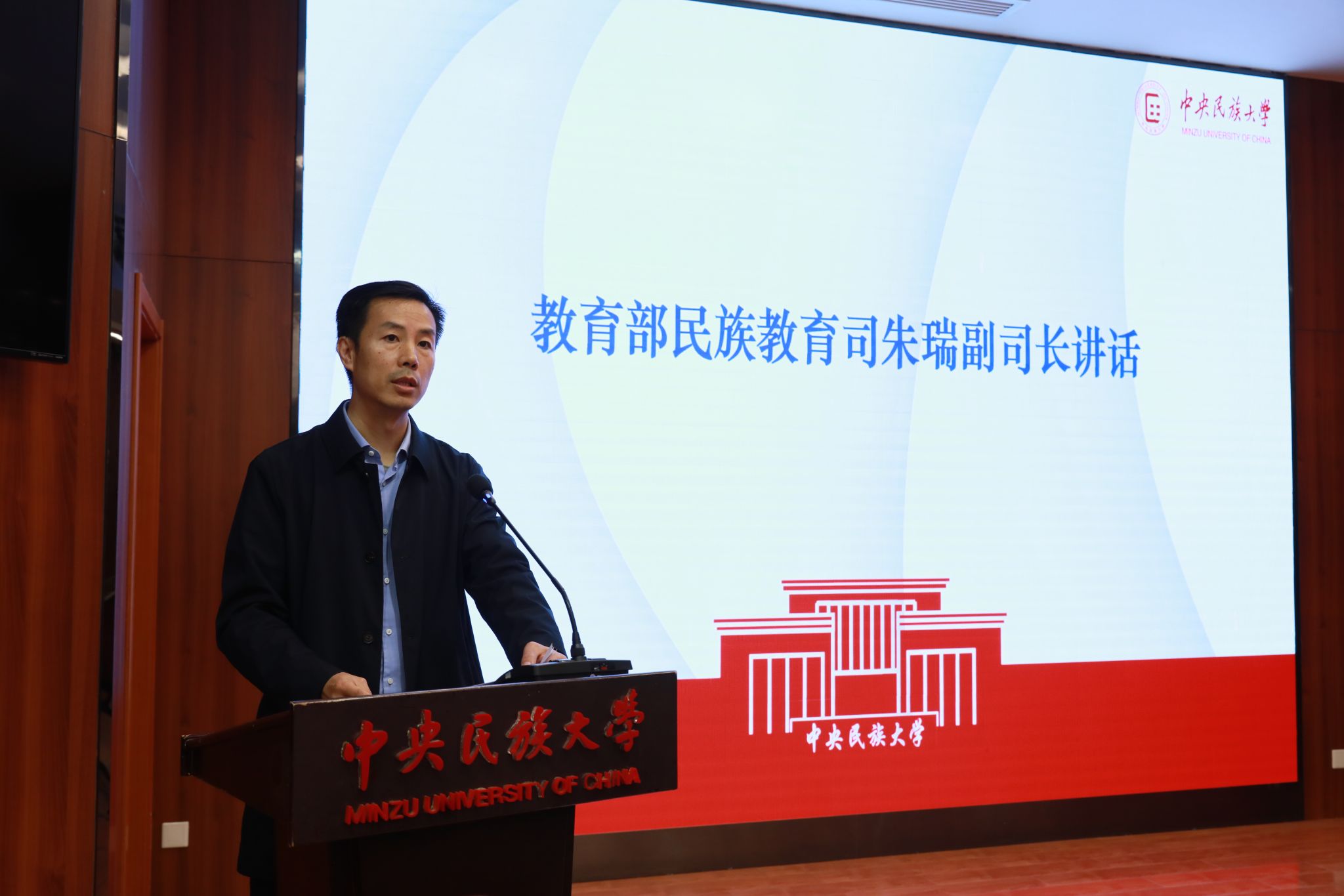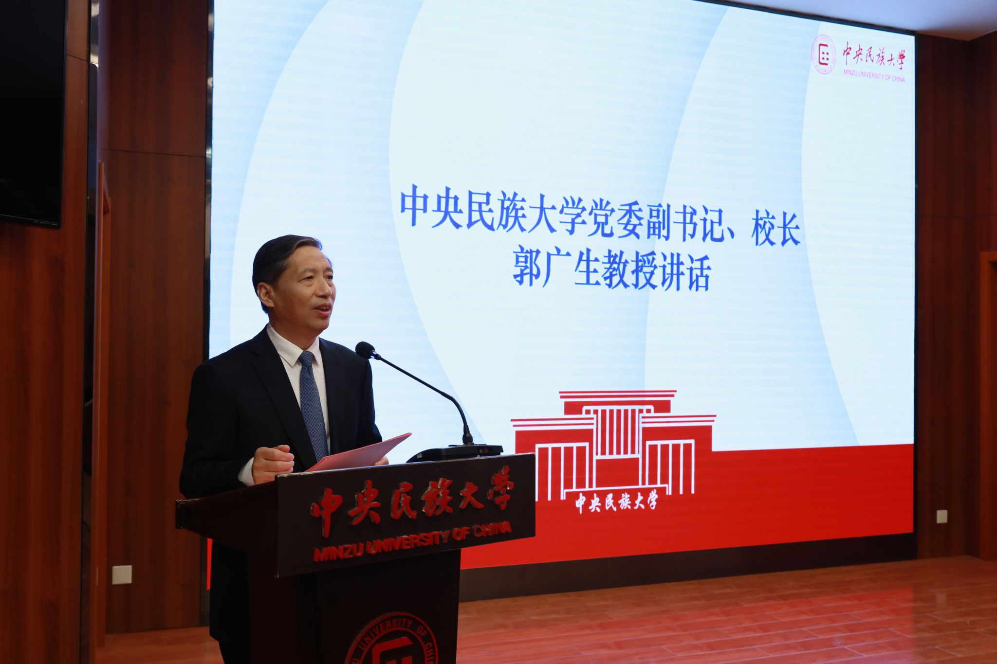 新闻网讯 近日,“ag视讯民族地区教育高质量发展战略研究院成立大会暨教育强国建设与铸牢中华民族共同体意识学术研讨会”在海淀校区知行堂举行。国家民委教育司一级巡视员李学锋,教育部民族教育司副司长朱瑞,校党委副书记、校长郭广生,校党委常委、副校长石亚洲等出席并致辞。