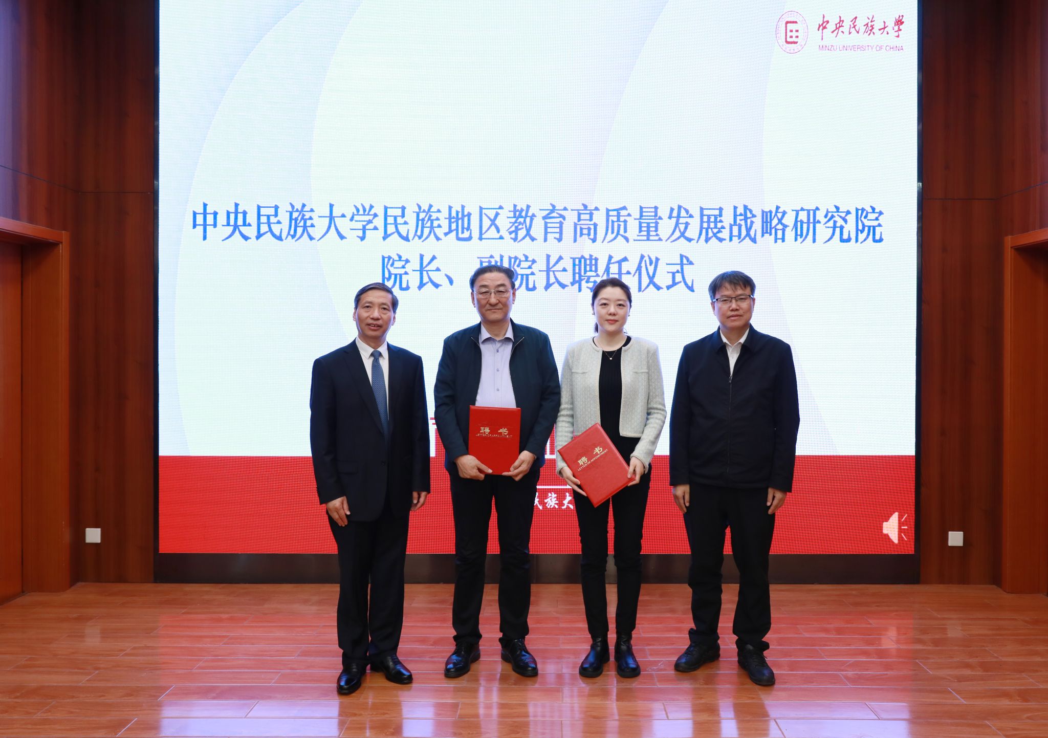 成立大会上,李学锋、朱瑞、郭广生、石亚洲以及教育学院教授苏德共同为“ag视讯民族地区教育高质量发展战略研究院”揭牌。聘任苏德担任研究院院长,耿泽博士担任研究院副院长。