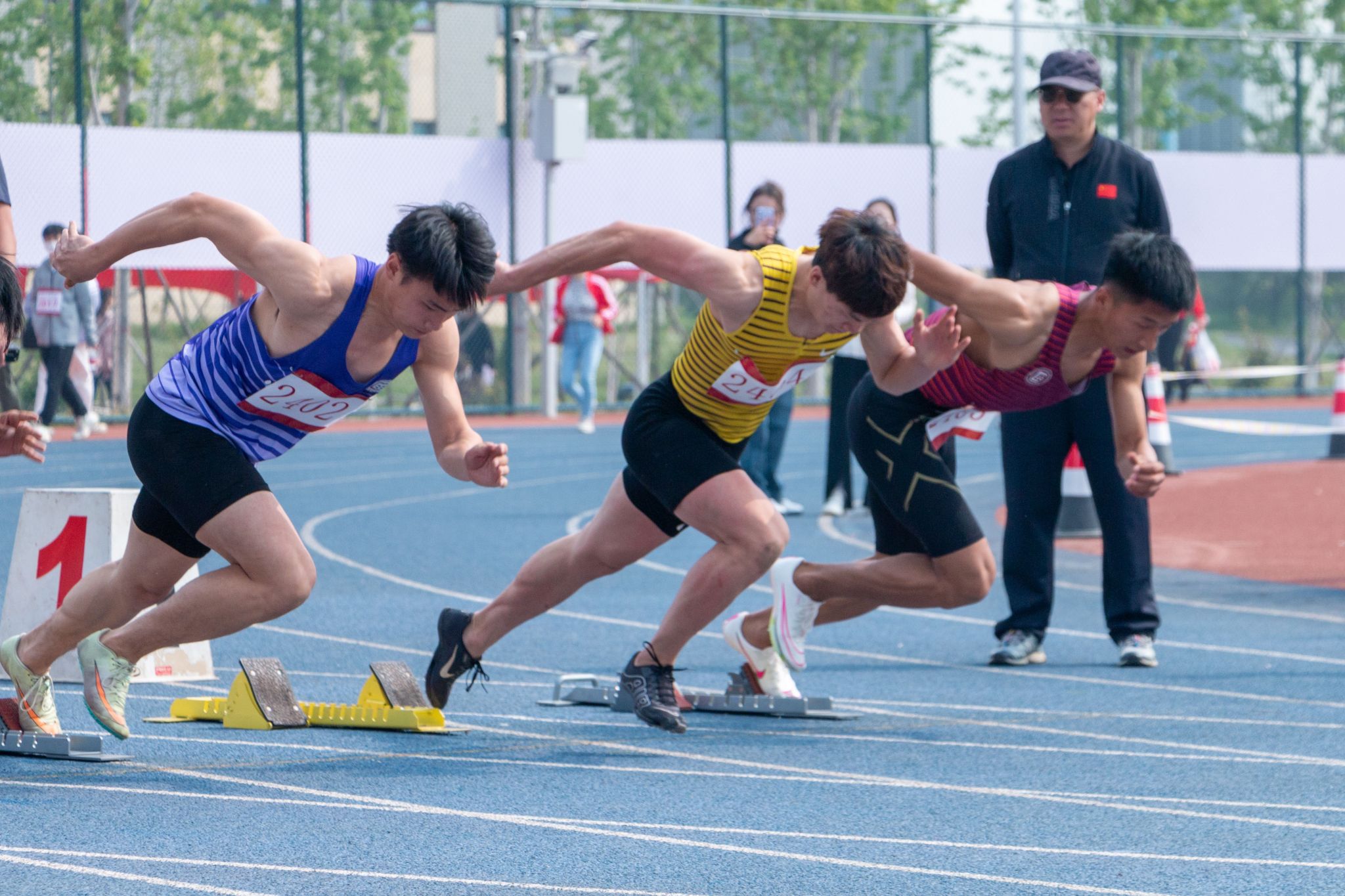 随着郭广生宣布“ag视讯第57届田径运动会开幕”,本届运动会各项比赛决赛帷幕正式拉开。发令枪响,在观众们的呐喊加油声中,女子组100米、男子组100米、男子体院组100米、教工组100米等决赛相继上演精彩角逐。