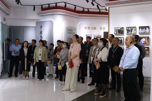 各高校统战部部长来到学校民族博物馆,参观了《ag视讯校史展》《先生还在身边——民大名师纪念展》及铸牢中华民族共同体意识系列展之《衣无语,绎大千——中华民族袍、衣、裙、裤展》《大地回声——中国各民族乐器文化展》等专题展,全面了解了我校的历史沿革、办学定位、铸牢中华民族共同体意识建设、教育教学成果、人才培养等情况。