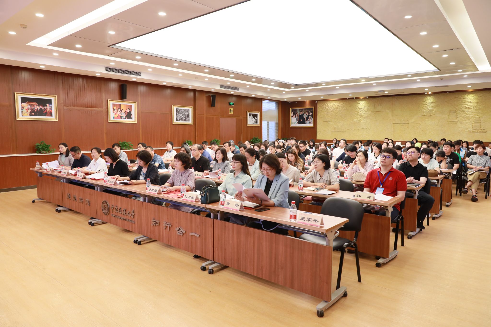 各学院2024年本科分省招生组负责人及成员、招生就业工作处全体人员,对招生宣传、录取工作有兴趣的教职工,招生宣传工作学生志愿者等共110余人参加了招生宣传工作培训会议。(摄影:马丹妮)