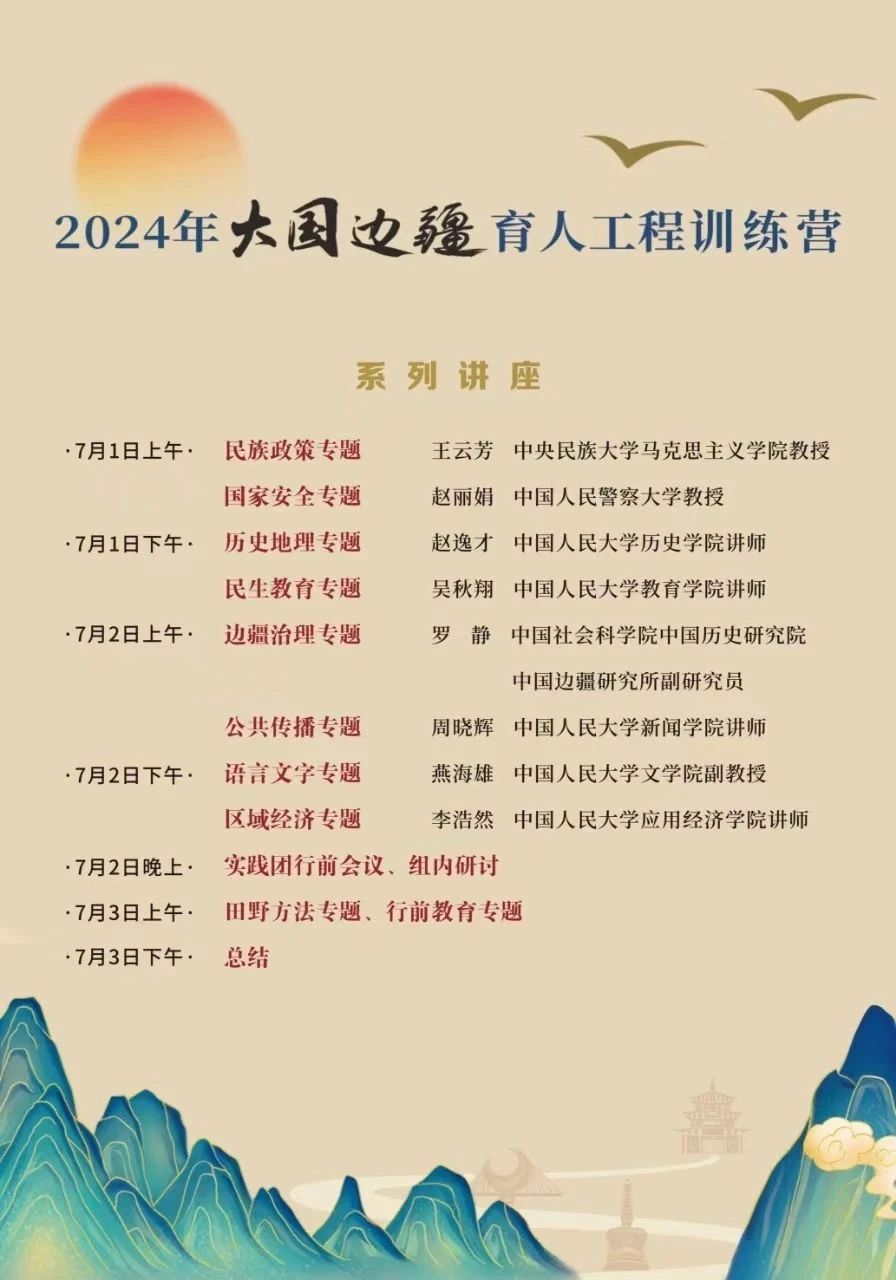 6月30日晚-7月3日还将举办校地联动主题宣讲活动和边疆知识系列讲座。